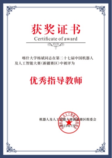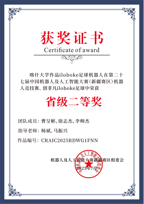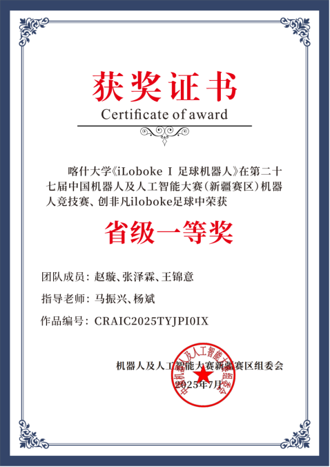 通过为期3个月的赛前准备、培训和训练,我院6支参赛队伍,凭借扎实的专业功底、出色的创新能力和稳定的临场发挥,在众多参赛队伍中脱颖而出,最终斩获自治区一等奖2项、二等奖2项、三等奖2项,3支队伍晋级国赛。马振兴、杨斌、娄颜超3位教师荣获第二十七届中国机器人及人工智能大赛(新疆赛区)“优秀指导教师”荣誉称号。
