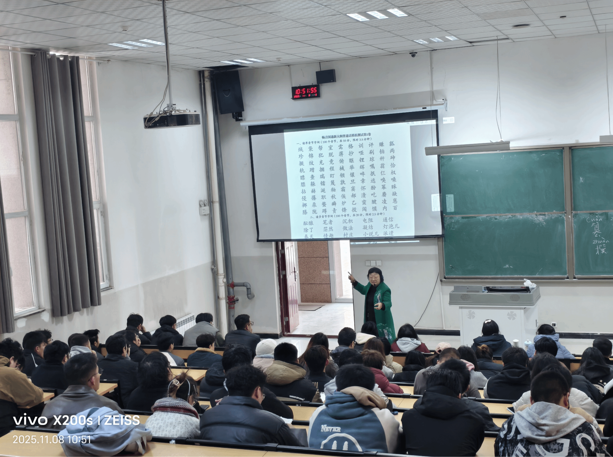 近日,电子与通信工程学院为进一步提升学生综合素质和就业能力,对在校生大三大四级学生开展了普通话过级考试专题辅导班。辅导班紧紧围绕“推广普通话,奋进新征程”这一主题展开,旨在通过精准辅导学生讲好普通话,助力提升学生普通话水平测试过级率。